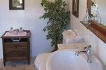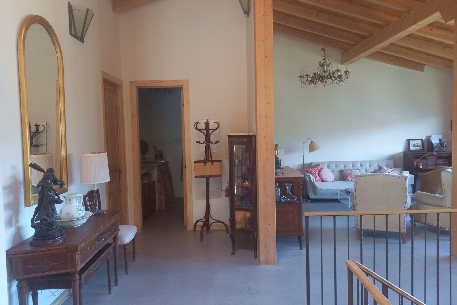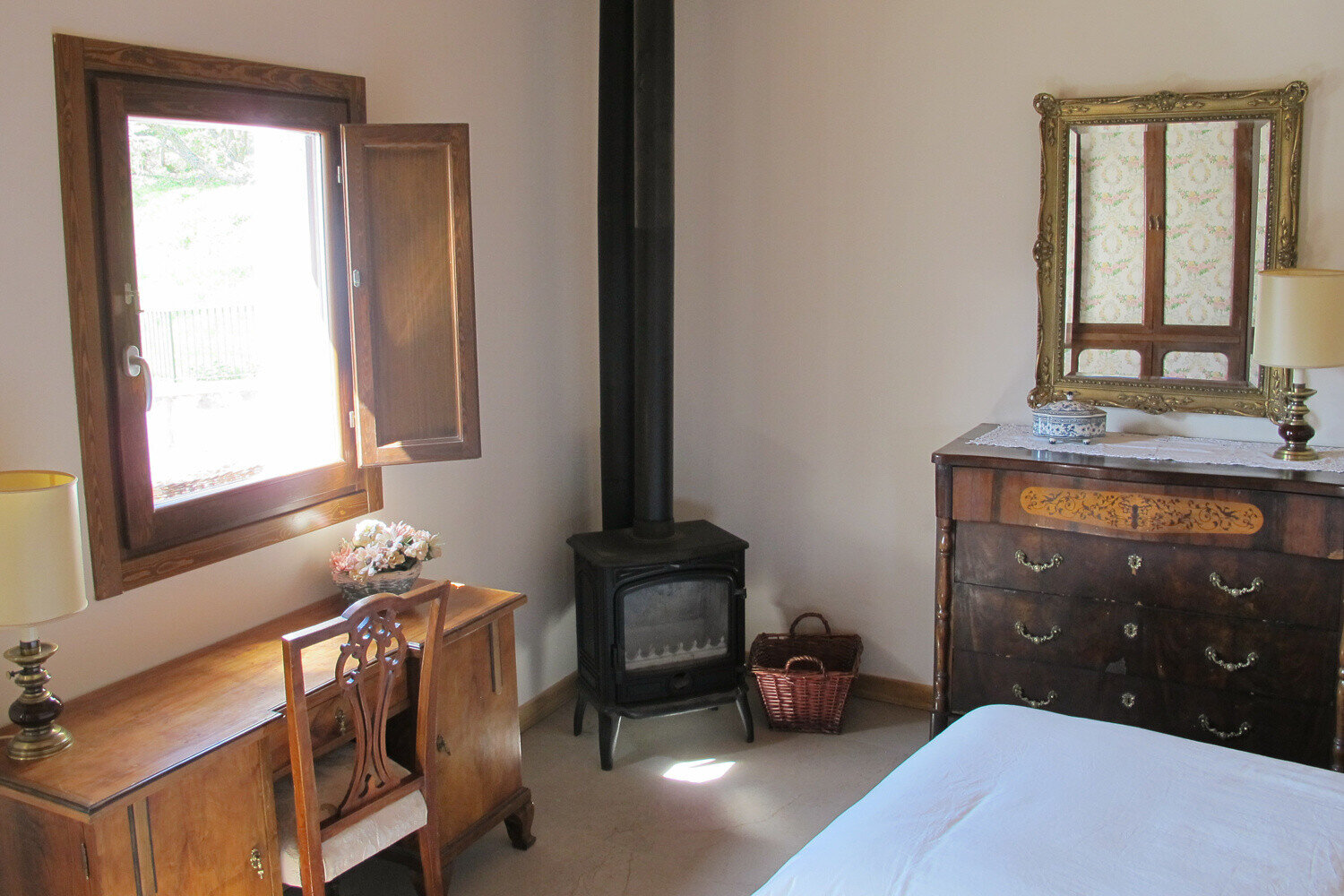 La vivienda cuenta con tres habitaciones que suman un total de seis camas individuales de 90 cm, con posibilidad de añadir hasta tres camas supletorias. Una de las habitaciones dispone de baño privado, mientras que las otras dos comparten un baño completo. Además, varias estancias incluyen chimenea de leña, aportando un extra de calidez y encanto tanto en las habitaciones como en el salón.