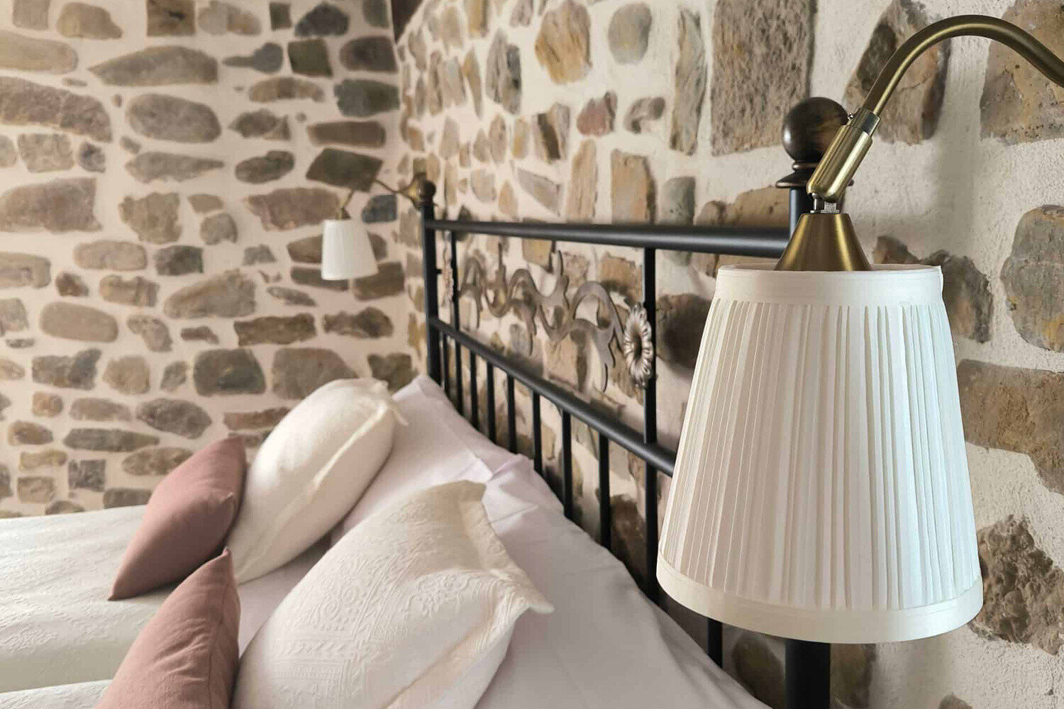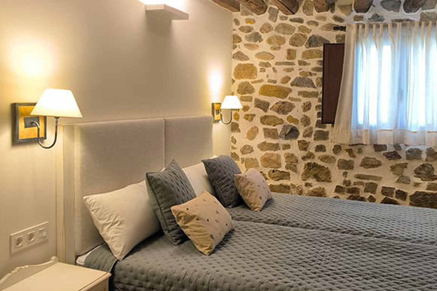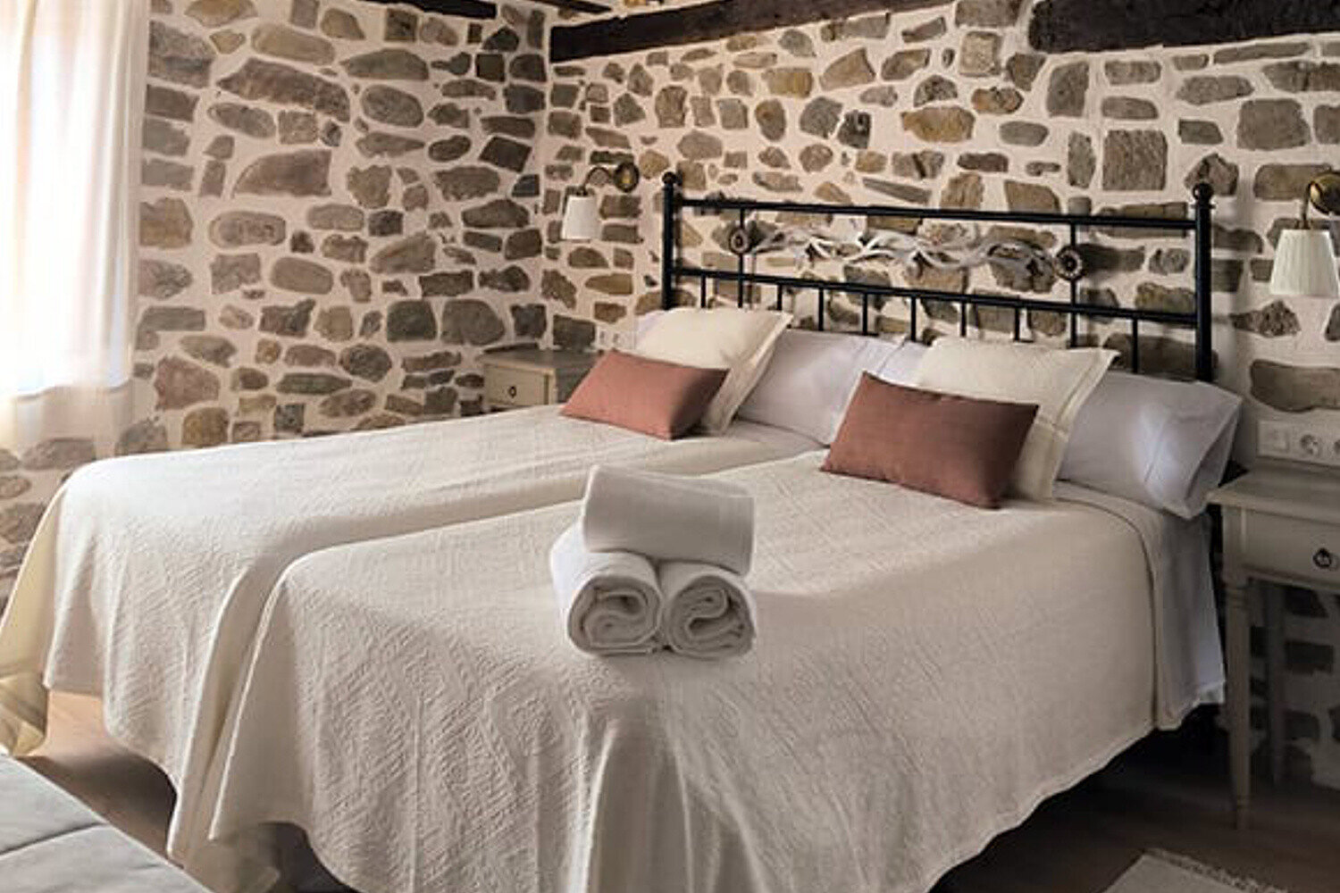 Las habitaciones, cálidas y luminosas, han sido diseñadas para garantizar el descanso y la tranquilidad. Con vigas de madera vistas, paredes de piedra y textiles acogedores, cada estancia transmite la esencia de la sierra sin renunciar a la comodidad. Todas cuentan con baño privado y detalles cuidados que elevan la experiencia.