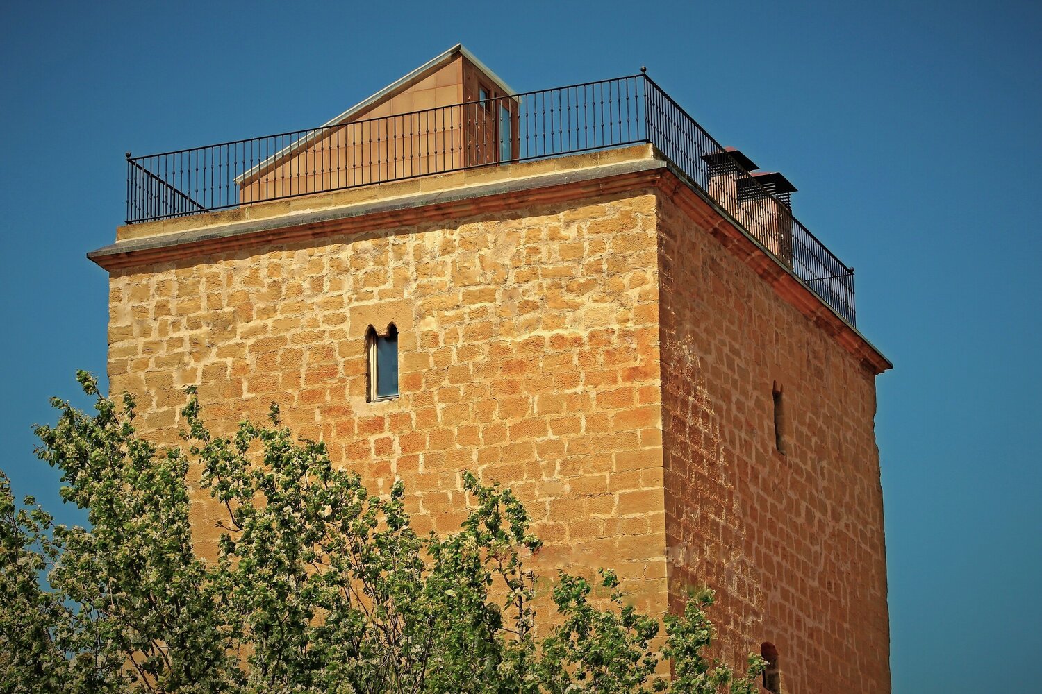 En la parte más alta de la torre podemos gozar de una hermosa terraza-solarium, con impresionantes vistas al valle del Oja, y las sierras que lo rodean, los montes Obarenes, la sierra Cantabria y la sierra de la Demanda, coronado por el pico San Lorenzo (2.300 m.) el "techo de la Rioja".