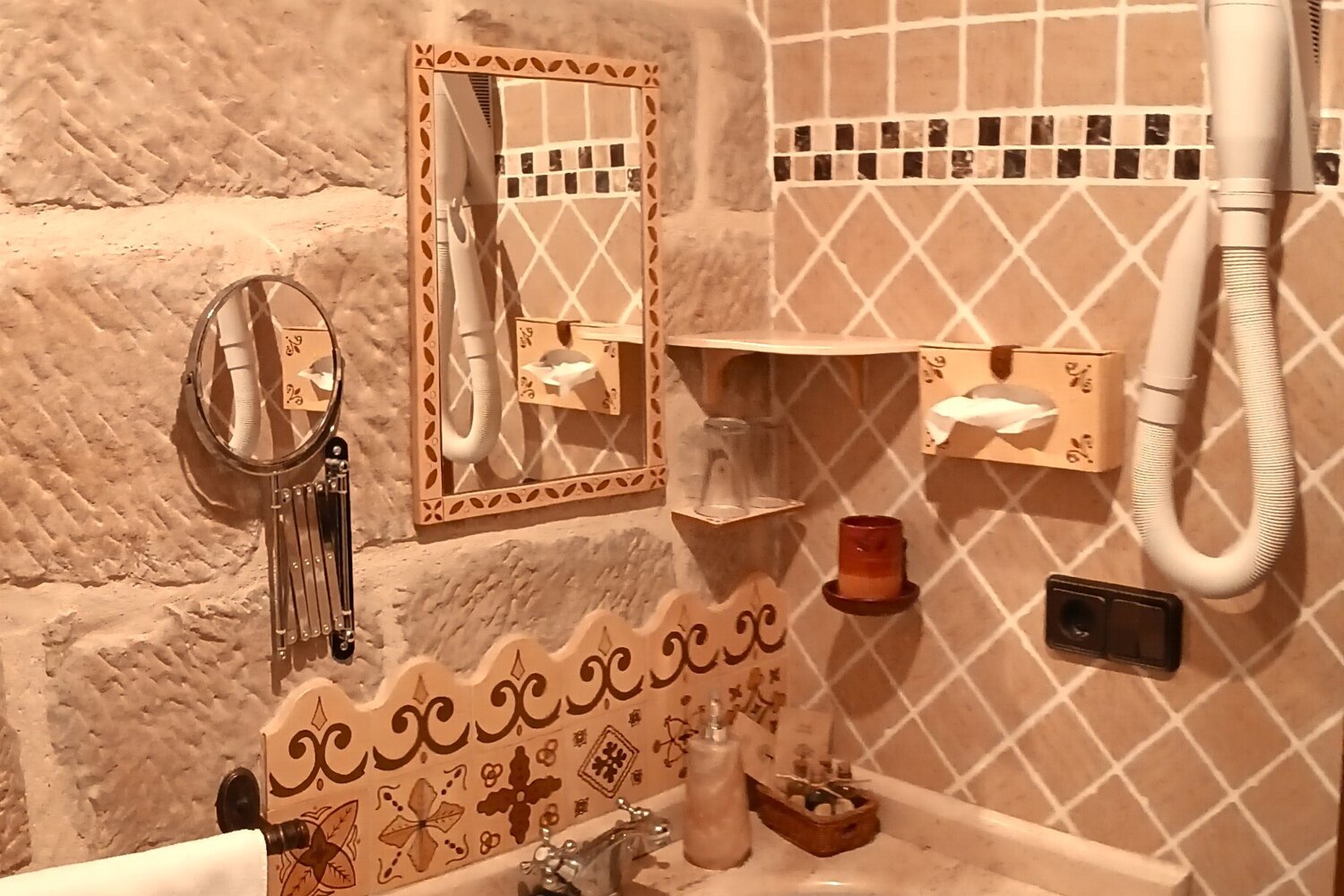 Esta bonita estancia invita al sueño reparador en su cama con dosel de 1,60m. y a la lectura sosegada bajo la bóveda de mosaico de su hermosa ventana festejador con asiento de piedra.